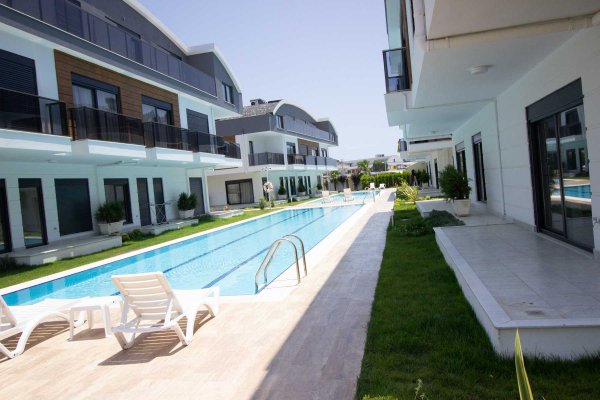 A modern residential complex in Antalya is located in a quiet residential area with a convenient location. The complex consists of two 5-storey residential blocks located on a landscaped landscaped area. The complex also has its own private swimming pool for the residents of the house, underground parking on the territory and a guarded fenced area.