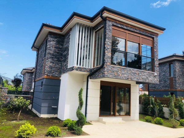 This modern semi detached villa for sale is only 2 years old and has an overall area of 260 square meters. The house in turkey for sale has a very spacious living room with large sliding doors that open out onto the garden. The separate kitchen is a good size and fitted with a good range of units and counter top space and space for a dining table. The villa has four bedrooms, all with fitted wardrobes and the master bedroom has an en-suite shower room. There is also a family bathroom. Upstairs there is a spacious roof terrace with views over the countryside. Outside there is a well maintained garden with a lawn, trees and shrubs.